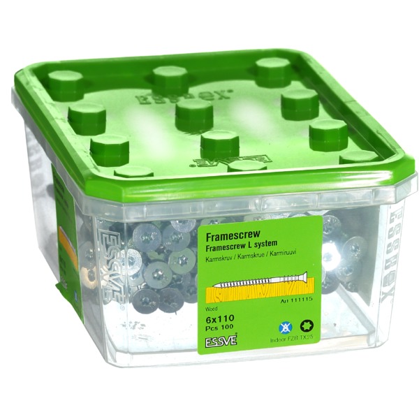 ESSVE Karmskrue L er beregnet for montering av karmer for innerdører i tre. Ved montering i betong, lettbetong, hulltegl, tegl og Leca må det benyttes nylonplugg for å oppnå korrekt montasje. Karmskrue L gir en fullstendig justerbar montering. Er produsert i herdet stål med blankforsinket overflatebehandling.