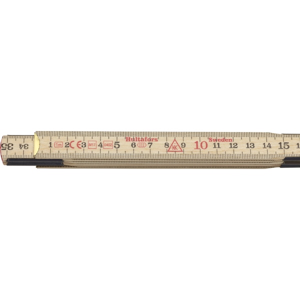 Hultafors klassiker, en nødvendighet for alle håndverkere. Tradisjonelt produsert av glassbjerk med ledd av svensk stål, som gjør det mulig å ha tynne stikker og en smidig meterstokk. Metrisk gradering i svart på begge sider med røde desimaltall.