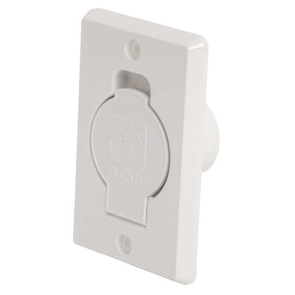 Flexit sugekontakt hvit. Sugekontakt til sentralstøvsuger. For vegg- eller gulvmontering. Tilpasset monteringsplate art-nr 02470 og adapter art-nr 02476. Materiale: UV stabilisert ABS plast.