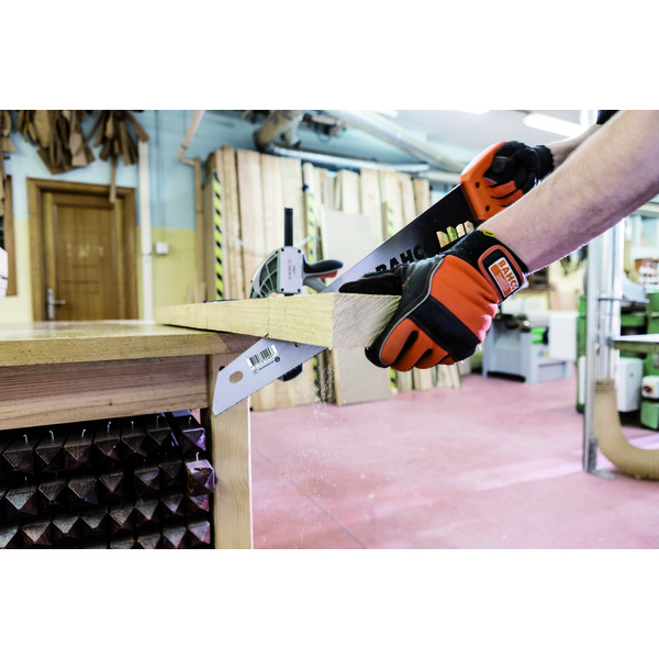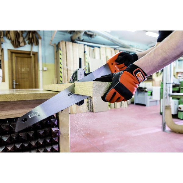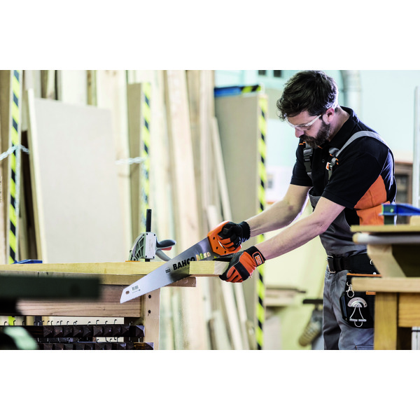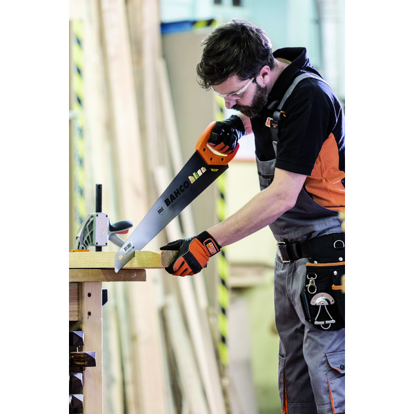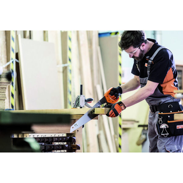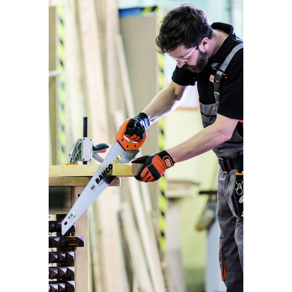 Universal håndsag for kapping av alle typer trematerialer. Varig skarphet med universaltanning og herdete tannspisser. Håndtak med et komfortabelt grep og god støtte. Skrudd 2-komponents håndtak med 45° og 90° . Blad lengde er 550mm, 7/8 tenner pr tomme(medium tanning)