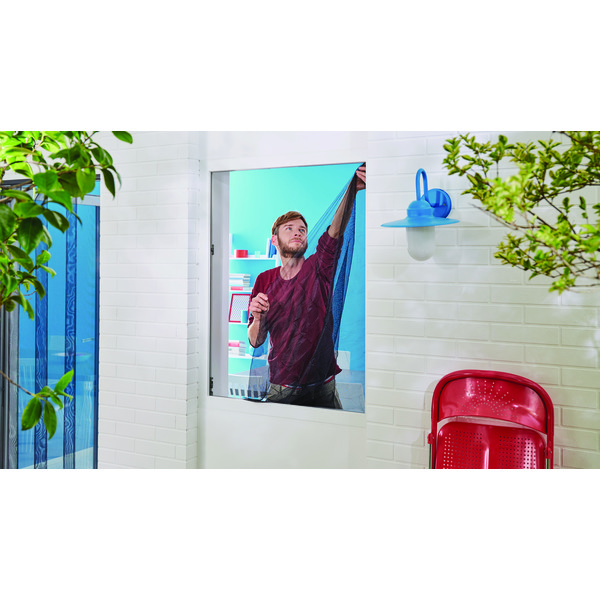 tesa Insect Stop Hook & Loop COMFORT for Windows er en effektiv myggstopper, som gjør at du kan ha vinduene åpne uten å måtte bekymre seg for at det kommer inn insekter. Den er tilgjengelig i to farger og to størrelser, som passer de fleste vinduer. Takket være systemet for enkel montering og fjerning, gir denne allsidige myggnettingen rask installasjon og enkel fjerning. For å feste den til vinduet, er det bare å feste den inkluderte selvklebende tapen med krokbakside på vinduskarmen, og bruke den medfølgende trykkenheten til å feste nettingen. For å fjerne nettingen, er det bare å bare trekke av.