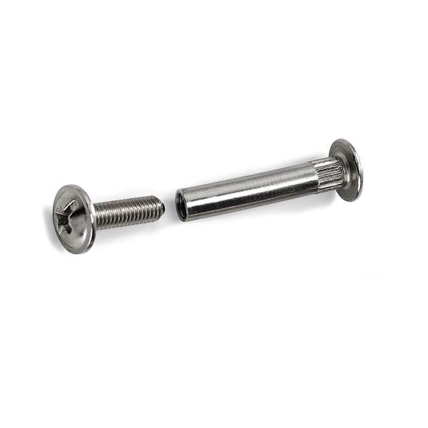 Forbindingsskrue av stål med hylse og M4-skrue. Egnet for å koble sammen to skapdører. Justerbar mellom 25 og 35 mm. Pakke med 4 stk.