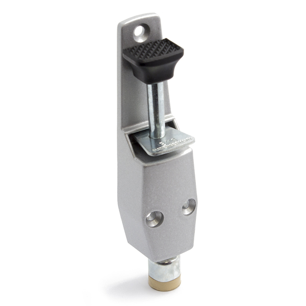 Dørholder av metall. Fjærbelastet stempel. Høyde 124 mm, slaglengde 20-47 mm. Leveres med skruer.