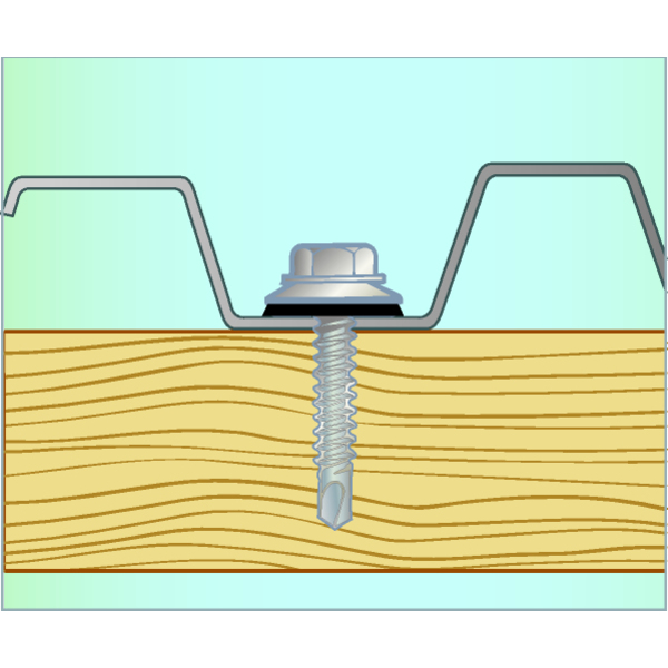 Skruen er produsert av aluminium og lakkert med polyesterpulverlakk. Den har sekskanthode. Skruen har aluminiumsskive med EPDM-tetting, er selvborende og gjengpressende.