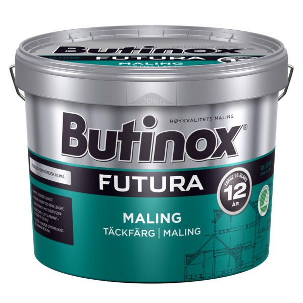 Butinox Futura Maling er halvblank høykvalitetsmaling som gir meget god værbestandighet og lang holdbarhet, i tillegg til langvarig farge- og glansstabilitet. Det gjør at huset ser nymalt og vakkert ut svært lenge. Butinox Futura Maling gir 12 års garanti på farge og glans.