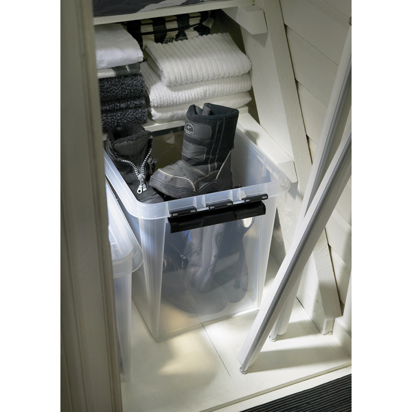 SmartStore Classic er en serie oppbevaringsbokser av premiumkvalitet, med et bredt utvalg av størrelser for å passe ulike behov. SmartStore Classic er vår mest populære oppbevaringsserie og har siden 1995 stått for sikker og holdbar oppbevaring. Denne høye 52-liters boksen er perfekt for å oppbevare plasskrevende gjenstander som håndklær, dyner, puter og vinterklær. Det transparente materialet gjør det lett å se hva hver boks inneholder. Stødige klips av resirkulert plast holder lokket på plass. Boksene kan stables på hverandre med lokk, og i hverandre uten lokk. Classic 52 L kan stables med Classic 20 L og 31 L. Laget i Sverige, av bærekraftig, matgodkjent plast. 10 års garanti.
