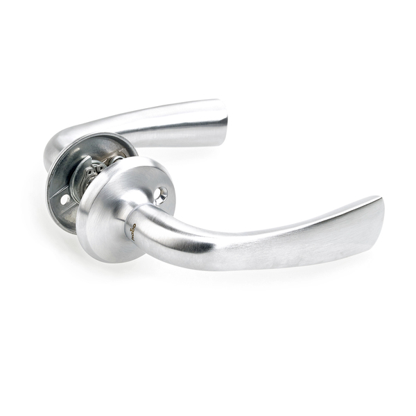 Dørhåndtak av messing med dobbeltvirkende returfjær for ytterdører med modullåskasse. En massiv og kompakt vrider med et moderne uttrykk. Med dobbeltvirkende returfjær fungerer dørhåndtaket også på låskasser hvor forreiling skjer ved at Dørhåndtaken løftes. Tilpasset dørtykkelse 38-70 mm. Bygger ut 62 mm. Finnes også som innerdørsvrider.