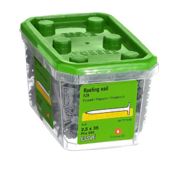 Din byggevareforhandler på Askøy40917544 40917544 Essve 2.5, 35, 8.2, CE-godkjent, ESSVE Pappspiker, For takpapp, asfalt og andre tynne materialer, Stål, Utendørs med krav til rustbeskyttelse, Varmgalvanisert 7317761818588,7317761040958,7317761963073,
