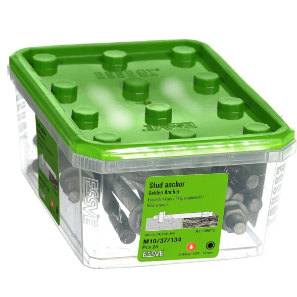 ESSVE Ekspansjonsbolt Golden Anchor er beregnet for innfestning i betong og naturstein. Ekspansjonsankeret kan med fordel brukes i applikasjoner der det stilles høye krav til innfestningen. Golden Anchor kan brukes til å feste tre-/stålstendere ved reisverk, feste av beslag, z-jern, armeringer etc.