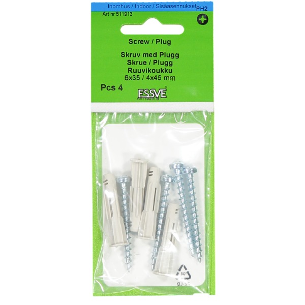 ESSVE SMÅPAKK SKRUE-UNIVERSALPLUGG 6X35 -4 ESSVE