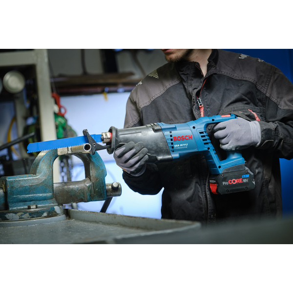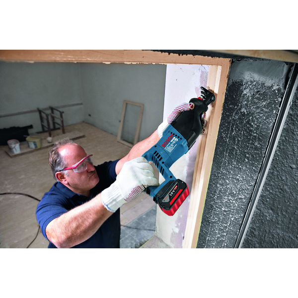 Den batteridrevne bajonettsagen GSA 18 V-LI Professional har stor sagekapasitet og lang brukstid. Sagens 18 V-batteri gir mulighet til over 100 kutt i trevirke av gran på 100 x 100 mm på én lading, noe som sørger for rask fremdrift i arbeidet. Denne bajonettsagen har Electronic Motor Protection og kombinerer utholdenhet med lang levetid. Med det verktøyløse Bosch SDS-systemet byttes sagblad raskt og enkelt. GSA 18 V-LI Professional er beregnet for saging av tre, metall og plast, samt trekompositt og isolasjonsmaterialer. Det passer til alle Bosch Professional 18 V-batterier og -ladere (medfølger ikke), og leveres i en pappeske.