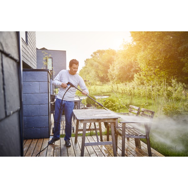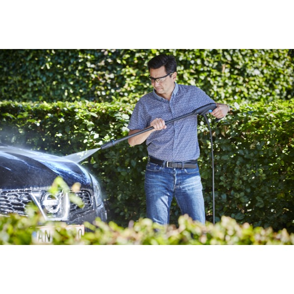 En robust og effektiv vasker, som er perfekt til vanlig høytrykksvasking og bilvask. Det stående designet og de brede kjørehjulene gjør vaskeren svært mobil. Vaskeren kan også henges opp på veggen ved hjelp av et eget veggbeslag, slik at den ikke opptar gulvplass. Maks trykk 120 bar