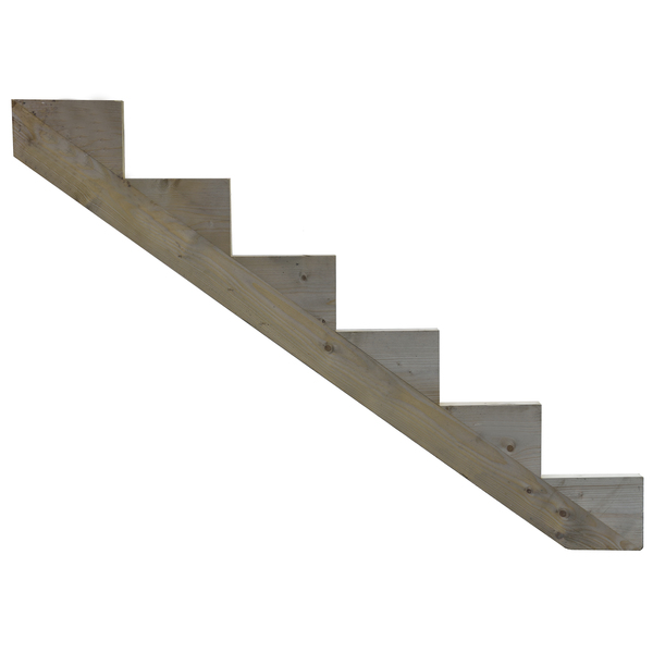 Trappevange 6-trinn L: 184 CM. Trykkimpregnert NTR-A. Steghøyde: 18 CM. Stegdybde: 25 CM. Stigningsgrad: 34 grader. Dimensjon: 45 X 115 MM. Ferdig produserte trappevanger fra 2 trinn opp til 7 trinn.