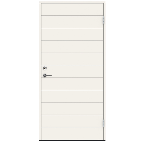 Swedoor Ganges ytterdørsett 9×21 Høyre malt hvit NCS S0502-Y. Dette er en ytterdør i vår ADVANCE-LINE Function serie. Kombinasjonen av funkisinspirert design med en solid konstruksjon gir en dør som er både stilren og har god sikkerhet mot innbrudd. Dører med glass har glasslist helt fri for skjøter og spiker.