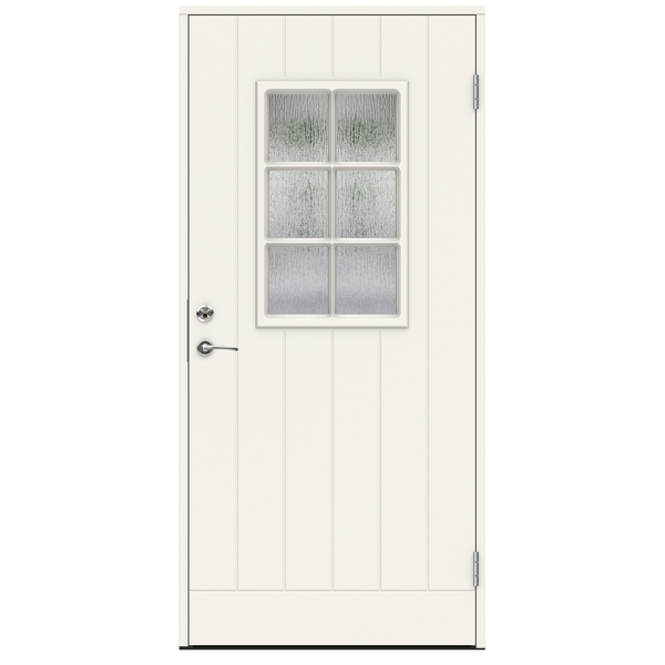 Swedoor Bizet ytterdørsett 9×21 Venstre malt hvit NCS S0502-Y med cotswold glass. Dette er en ytterdør i vår ADVANCE-LINE Classic serie inspirert av klassisk arkitektur fra tidlig 1900-tall. Det historiske uttrykket er kombinert med en moderne konstruksjon som har solide glasslister uten skjøter og spiker, noe som understreker dørens vakre utseende og gir økt sikkerhet mot innbruddsforsøk.
