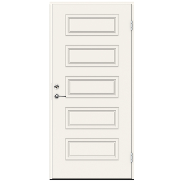 Swedoor Beethoven ytterdørsett 9×21 Venstre malt hvit NCS S0502-Y. Dette er en ytterdør i vår ADVANCE-LINE Classic serie inspirert av klassisk arkitektur fra tidlig 1900-tall. Det historiske uttrykket er kombinert med en moderne konstruksjon, noe som understreker dørens vakre utseende og gir økt sikkerhet mot innbruddsforsøk.