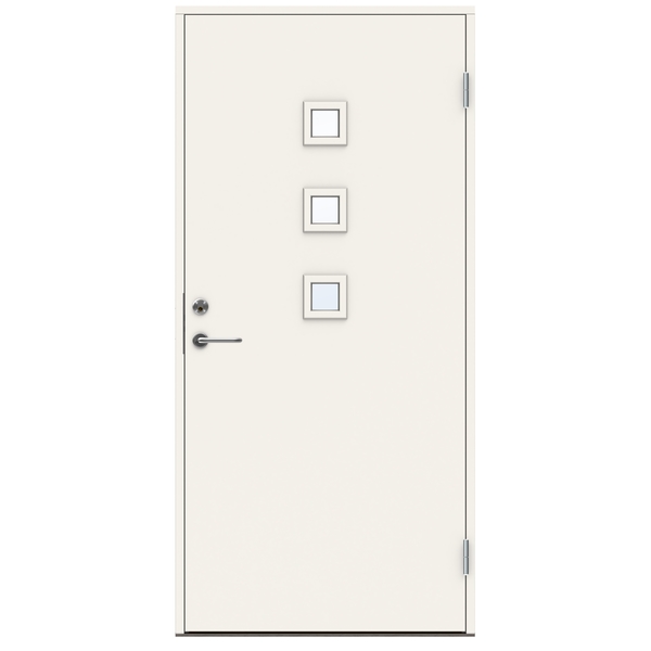 Swedoor P-1100 ytterdørsett 10×21 Venstre malt hvit NCS S0502-Y med klart glass. Dette er en enkel ytterdør i vår clever-line serie som har en lett konstuksjon (EPS kjerne) og som oppfyller de grunnleggende behovene når du ikke trenger ekstra funksjoner.