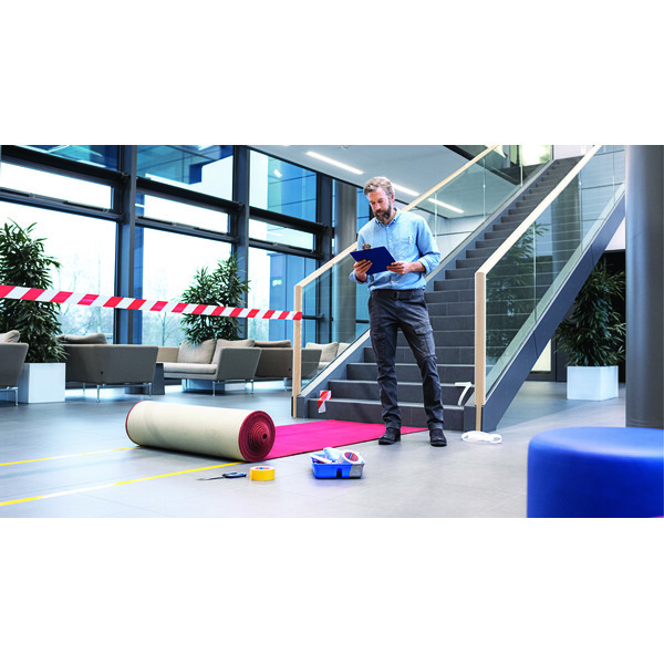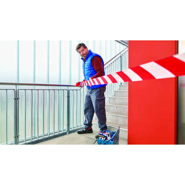 Kanskje du skal reparere oppkjørselen og vil sikre byggeplassen, eller kanskje du vil forebygge skader ved å advare forbipasserende om snublefarer – tesa Signal non-adhesive er den perfekte signaltapen for å sperre av tilgangen til farlige områder. Den røde og hvite tapen uten lim kan brukes til å tiltrekke seg oppmerksomheten eller varsle om potensielle farlige steder. Den er laget av en 80 mm bred polypropylenfilm, og er UV-bestandig i minst tre måneder. Den har iøynefallende røde og hvite striper, trykket på begge sider.