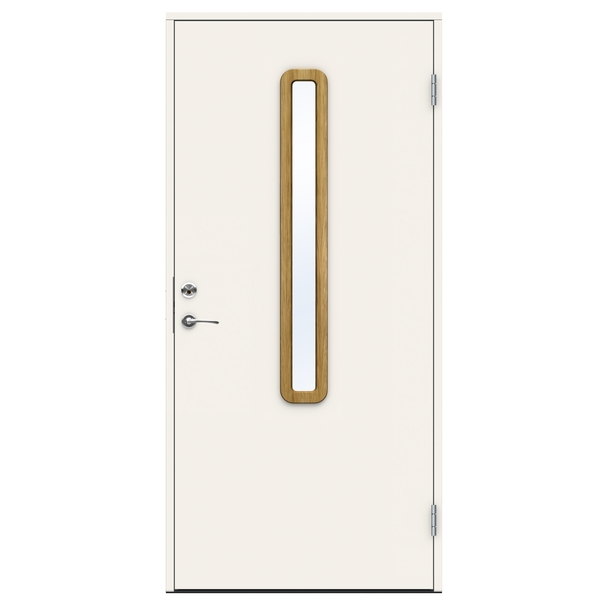 Swedoor Nile ytterdørsett 9×21 Høyre malt hvit NCS S0502-Y med klart glass og eik glasslister. Dette er en ytterdør i vår ADVANCE-LINE Function serie. Kombinasjonen av funkisinspirert design med en solid konstruksjon gir en dør som er både stilren og har god sikkerhet mot innbrudd. Dører med glass har glasslist helt fri for skjøter og spiker.