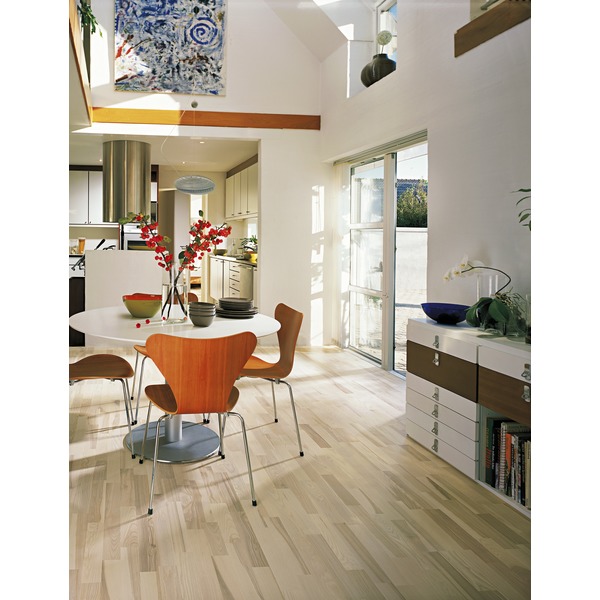 Ask Ceriale er et nytt hvitlasert 13 mm 3-stavs parkettgulv i ask med fargevariasjoner i lamellene, som gir gulvet et naturlig utseende. Gulvet er i hvit matt lakk. Med Woodloc5G kan gulvet enkelt legges i store areal opp til 18 meter i bredden.