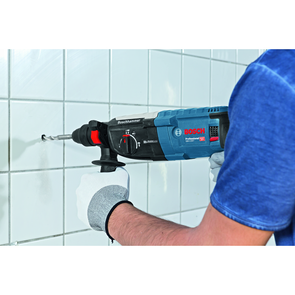GBH 2-28 F Professional med skiftechuck er det sterkeste verktøyet fra Bosch i kategorien nettdrevne 2 kg SDS plus-borhammere. Den robuste motoren og en slagenergi på imponerende 3,2 J sørger for effektiv boring. Borhammeren har også KickBack Control for økt brukerbeskyttelse og Vibration Control for kontinuerlig arbeid uten anstrengelser under tidkrevende oppgaver. Verktøyet er beregnet for boring og meisling i betong, mur, tre og metall. Det passer til forskjellige støvavsugsadaptere, og leveres i en L-BOXX.