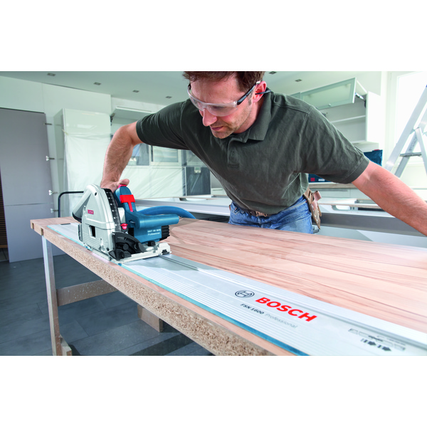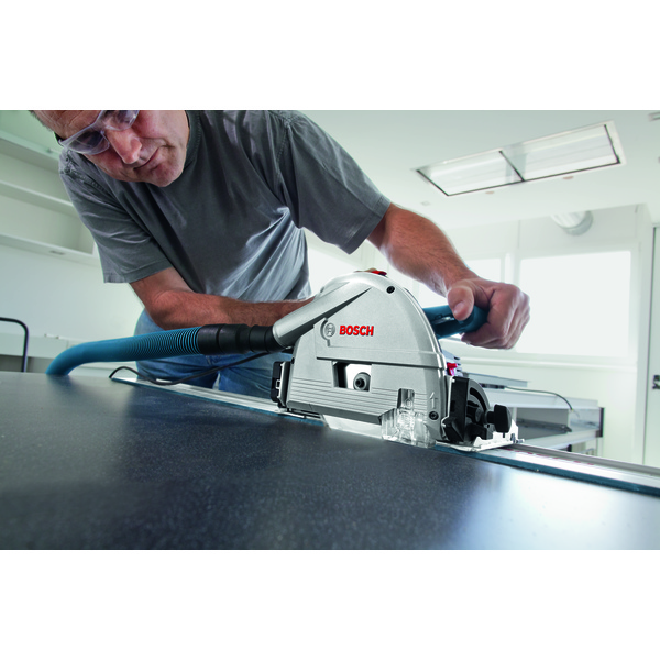 GKT 55 GCE Professional nettdrevet dykksag leverer svært presise og rene kutt i en rekke materialer. De høyverdige maskinkomponentene, presisjonssagbladet og det tilpassede styreskinnesystemet sørger for ekstremt nøyaktige resultater. Sagens effektive støvavsugssystem og støysvake sagblad gjør arbeidet behagelig, særlig innendørs. I tillegg gir den justerbare hastighetsinnstillingen mulighet til saging i en rekke materialer. Maskinen er beregnet for formatkapping og dykkutt i tre, sammensatte trematerialer, kartong og panelmaterialer samt aluminium og akrylglass. Den passer til Bosch Click & Clean støvavsugssystem og styreskinnesystemer fra Bosch, Festool, Mafll og Makita. Sagen leveres i en L-BOXX.