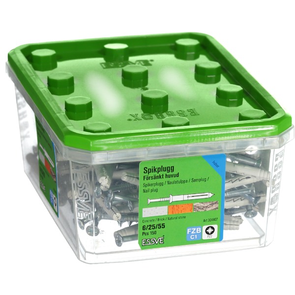 ESSVE Spikerplugg er beregnet for lettere montering av trelekter, sokler, kledning, innredningsdetaljer, skap mm. i materiale som betong, tegl, naturstein, eller hulldekkelement.