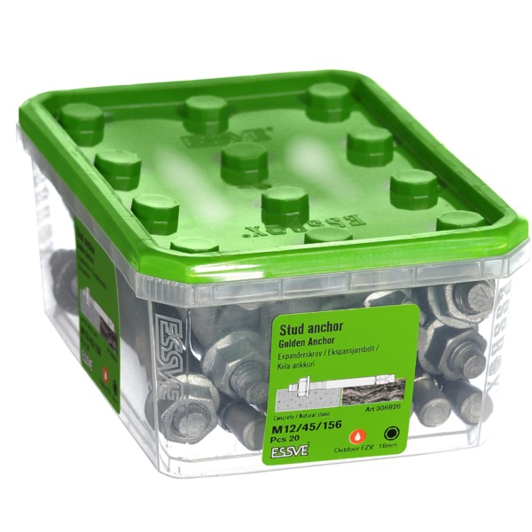 ESSVE Ekspansjonsbolt Golden Anchor er beregnet for innfestning i betong og naturstein. Ekspansjonsankeret kan med fordel brukes i applikasjoner der det stilles høye krav til innfestningen. Golden Anchor kan brukes til å feste tre-/stålstendere ved reisverk, feste av beslag, z-jern, armeringer etc.