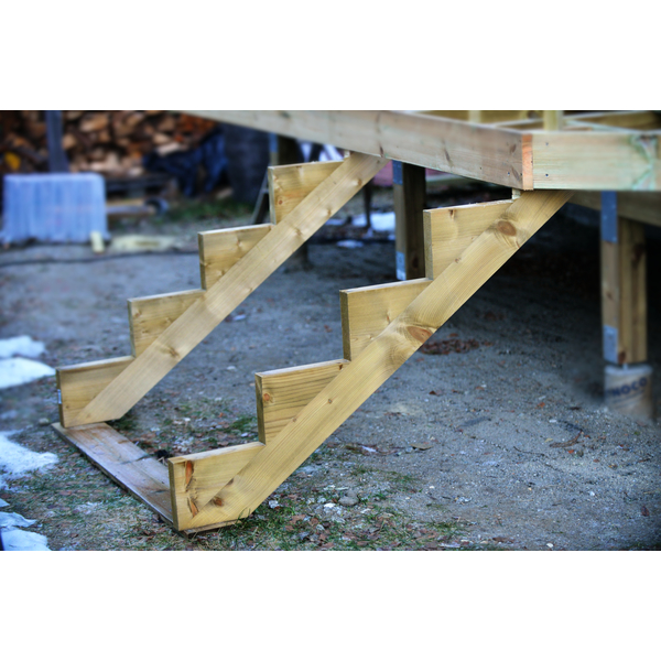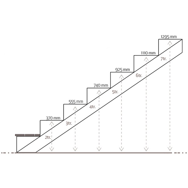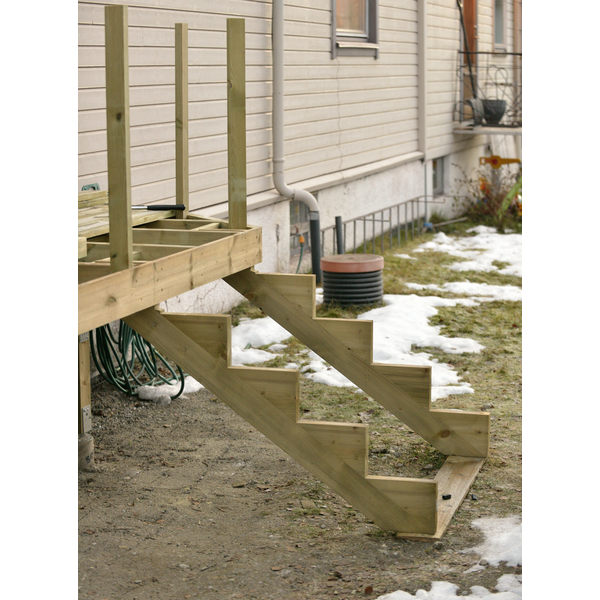 Trappevange 2 trinn L: 61,6 CM. Trykkimpregnert NTR-A. Steghøyde: 18 CM. Stegdybde: 25 CM. Stigningsgrad: 34 grader. Dimensjon: 45 X 115 MM. Ferdig produserte trappevanger fra 2 trinn opp til 7 trinn.