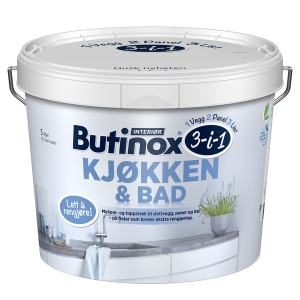 Butinox Interiør Kjøkken & Bad er en silkematt (glans 20) akrylmaling med filmkonserverende midler som reduserer risiko for overflatesopp. Malingen gir en meget vannfast og vaskbar overflate. Butinox Interiør Kjøkken & Bad kan brukes på flere typer underlag, enten det er vegger av glassfiber, tapet, bygningsplater, puss, betong, panel og lister.