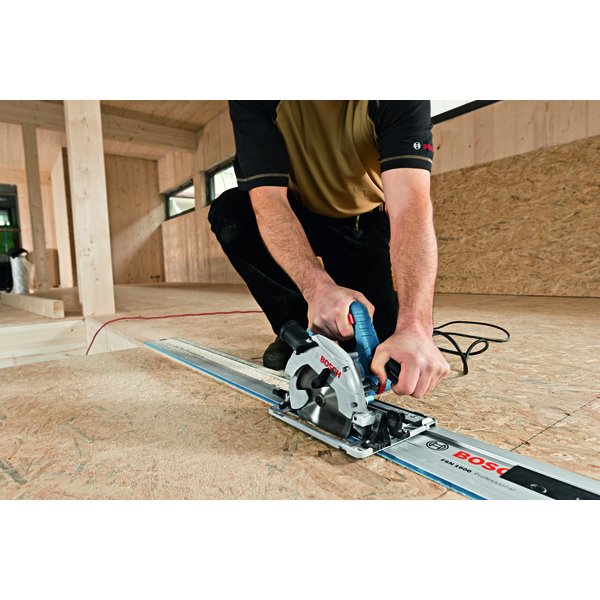 Sirkelsag GKS 55+ GCE. Kompakt sirkelsag med stor sagekapasitet på 62mm, 1350 W motor, variabel hastighet på 2100-4700 min, kompatibel med Bosch føringsskinnesystem, sagbladets diameter er Ø 165mm.