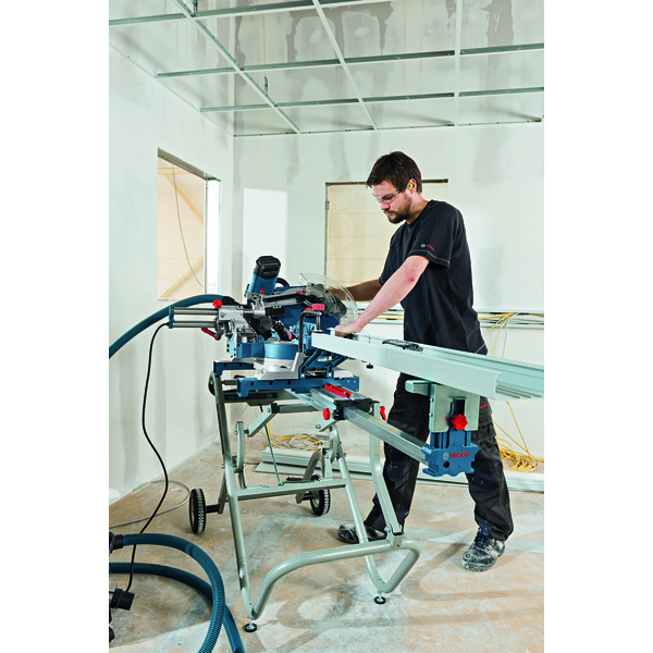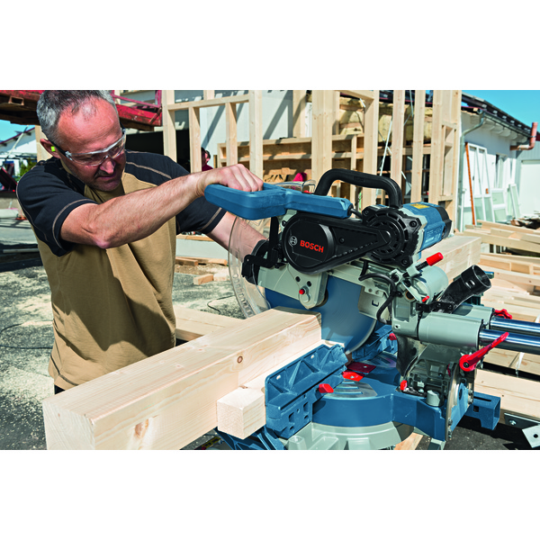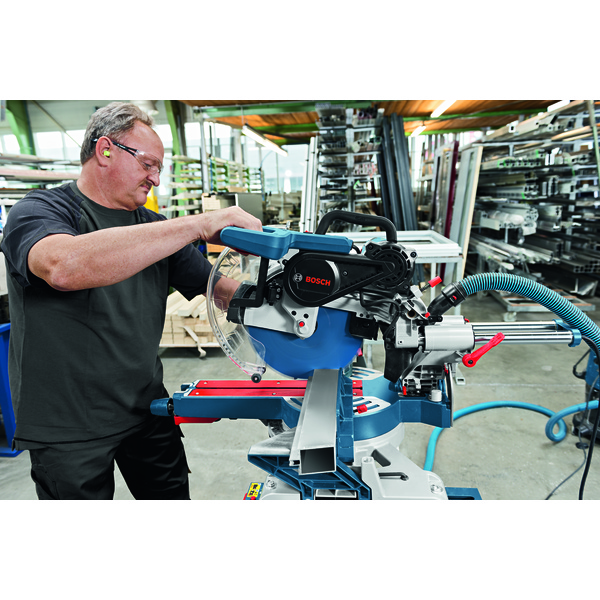 Gjør kort prosess med store emner med GCM 12 SDE Professional. Den ekstremt høye sagekapasiteten på 120 mm vertikalt og 400 mm horisontalt gir mulighet til kutt i svært store og voluminøse objekter. Kapp- og gjærsagen har justerbar hastighet, noe som gjør GCM 12 SDE Professional egnet for mange forskjellige materialer. For maksimal brukervennlighet kan sagblad skiftes raskt og uten verktøy. Sagen er beregnet for tverrgående kutt, gjæring, skråkanter og riller i tre, trebjelker og trekompositt, samt platematerialer, gulvpaneler, aluminium og plast. Den kan brukes med Bosch Click & Clean støvavsugssystem og forskjellige stativer.