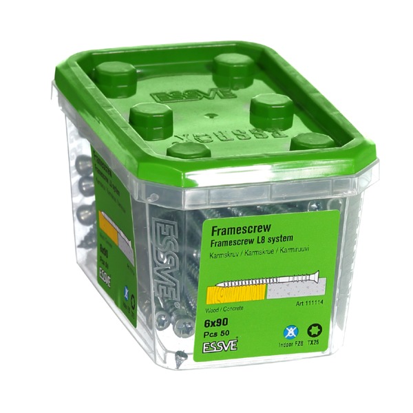 ESSVE Karmskrue L er beregnet for montering av karmer for innerdører i tre. Ved montering i betong, lettbetong, hulltegl, tegl og Leca må det benyttes nylonplugg for å oppnå korrekt montasje. Karmskrue L gir en fullstendig justerbar montering. Er produsert i herdet stål med blankforsinket overflatebehandling.
