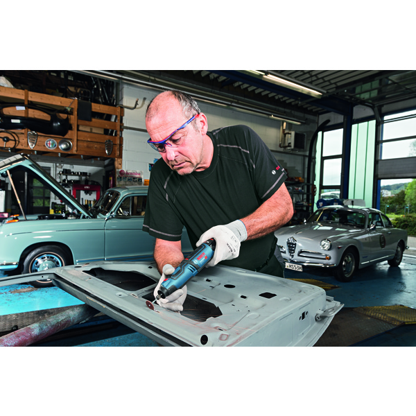 En kraftig motor med høyt turtall (inntil 35 000 o/min) sikrer at arbeidet går raskt unna. Rotasjonsverktøyet har videre mange profesjonelle bruksmuligheter som skjæring, fresing, polering og boring på spesielt vanskelige steder. Den gir komfortabelt arbeid takket være en kompakt konstruksjon, et ergonomisk design og den integrerte LED-belysningen. Produktet er batteridrevet (12V) og leveres i L-BOXX. Batteri og lader medfølger ikke.