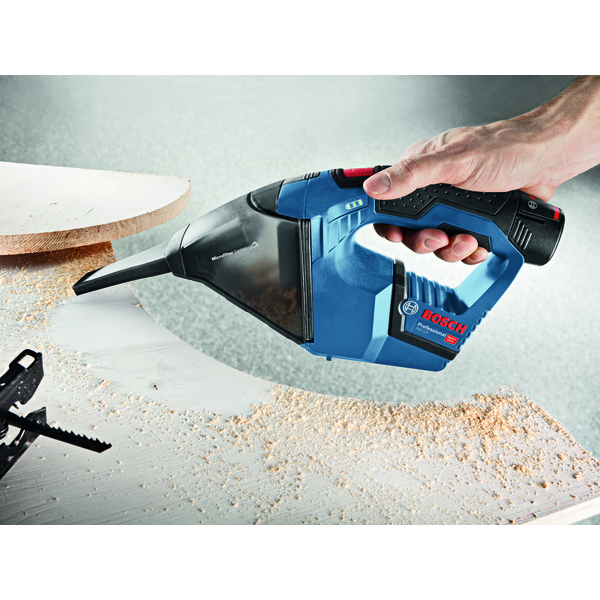 GAS 12 V Professional er Boschs ekstremt kompakte 12V støvsuger for tørrsuging. Den er batteridrevet og gir dermed frihet til å rengjøre uten tilgang til en stikkontakt. Det ekstremt kompakte designet gjør den enkel å transportere og manøvrere, og for praktisk transport passer den selv i den minste verktøykassen (L-BOXX 102). GAS 12 V Professional har også et forlengerrør, slik at det blir lettere å komme til på trange steder. Produktet leveres uten batteri og lader i en L-BOXX.