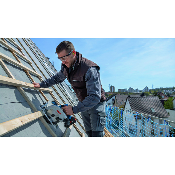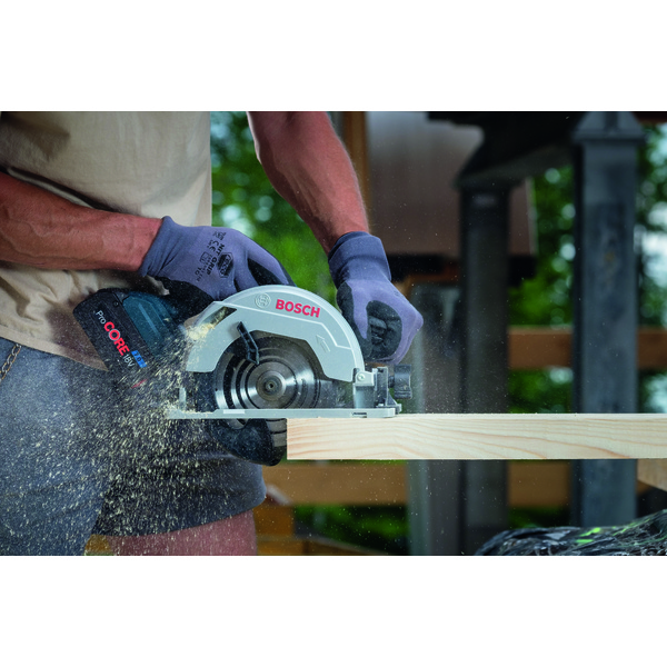 Kraftig og nøyaktig: Den batteridrevne sirkelsagen GKS 18V-57 G Professional, for kraftfulle kutt på inntil 57 mm, passer til vanlige styreskinnesystemer. Den sterke motoren leverer ytelse for dype kutt i mange forskjellige materialer. Sirkelsagen passer til Bosch sitt styreskinnesystem for nøyaktig saging, men også til styreskinnesystemene fra Mafell, Festool og Makita. Den har en hurtigvirkende motorbrems som stopper sagbladet umiddelbart, noe som gir økt brukerbeskyttelse. Verktøyet sager heltre og trematerialer som OSB, kryssfiner og MDF. Det passer til alle Bosch Professional 18 V-batterier og -ladere (Professional 18V System). Produktet leveres derimot uten batteri og lader i en L-BOXX.