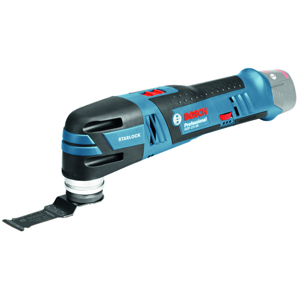 GOP 12V-28 Professional batteridrevet multiverktøy er den mest kompakte løsningen i Bosch Starlock-kategorien. Et overlegent Starlock-grensesnitt med optimert 3-dimensjonal kobling mellom maskinen og tilbehøret gir høyest mulig kraftoverføring og dermed raskere fremdrift i arbeidet. Multiverktøyets håndtak er smalt, slik at det i tillegg er enkelt å håndtere. Den lave vekten bidrar også til komfort og brukervennlighet. Verktøyet er beregnet for pussing, utskjæringer i gipsplater og montering av kjøkkeninnredning. Det kan brukes i tre, plast og metall, og er kompatibelt med Starlock-systemet. Verktøyet leveres uten batteri og lader i en pappeske.