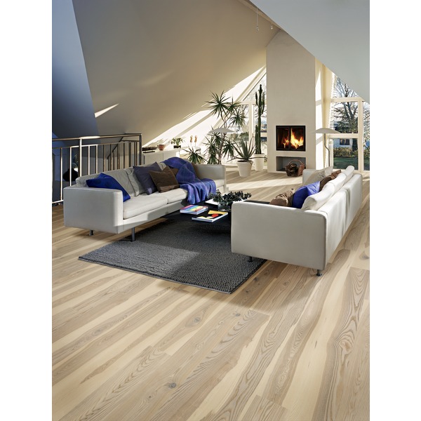 Ask Sandvig er et hvitpigmentert 1-stavs plankegulv med fargevariasjoner. Treets mørke brunkjerne i kombinasjon med den lyse ytveden skaper et gulv med stor karakter. Kan inneholde store kvister og utbedret kvist.