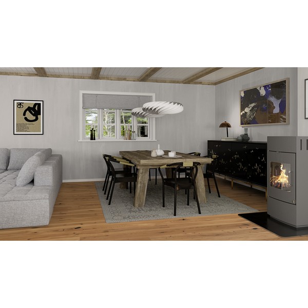 Eik Espressivo 209 mm plank er et nydelig, rustikt gulv med naturlig eikefarge. Røff sortering med stort fargespill, sparklede kvist og sprekker, samt yteved. Børsting og naturolje fremhever den naturlige overflaten og trestrukturen og gjør gulvet godt og behagelig å gå på. Plankene i den flotte bredden på hele 209 mm gir et eksklusivt utseende. Oljen inneholder bare naturlige ingredienser som oljer fra solsikke, tistel og soyabønne og naturlig voks (karnauba og candelilla) og gir svært god beskyttelse mot væsker, samt forbedret UV-stabilitet. For å forbedre slitestyrken anbefaler vi ett strøk med Boen Natural Oil før gulvet tas i bruk, deretter Boen Freshen Up for vedlikehold av mer trafikkerte områder. Limfritt, rask og sikker legging med 5G Click system. Velegnet for gulvvarme.
