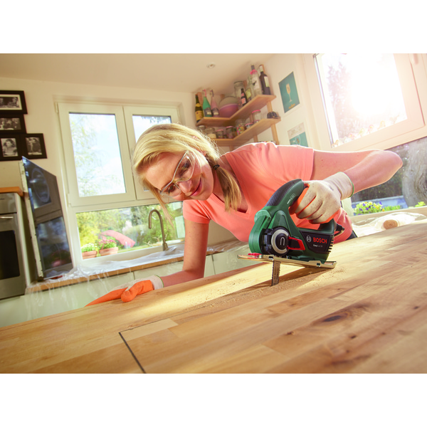 Benytt deg av EasyCut 50 for enkel dykksaging (uten forboring) med vinklet fotplate for kontroll når sagen dreies i materialet. Med en unik roterende kjedebevegelse er NanoBlade-sagbladet praktisk talt vibrasjonsfritt og sikrer jevn saging. EasyCut 50 er et ideelt valg for rettvinklede kutt i tre og plast inntil 50 mm. SDS-systemet gir videre mulighet til enkelt bytte av sagblad, mens CutControl og mulighet til tilkobling av støvsuger gir ekstra hjelp til å følge sagelinjen. En flisbeskyttelse minimerer også oppflising.
