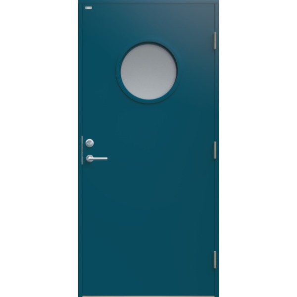 Slett ytterdør med rundt glass