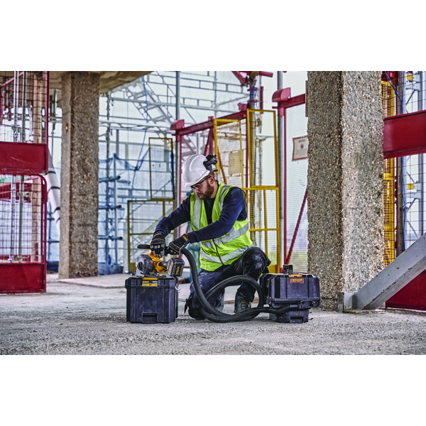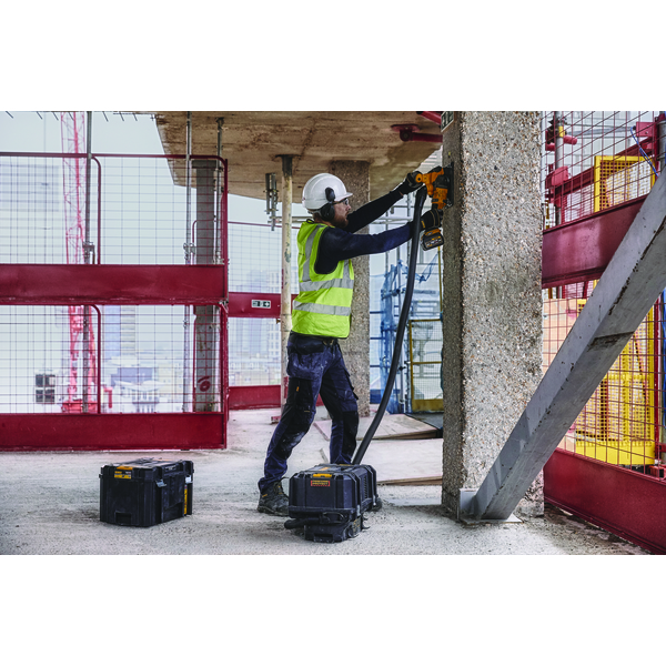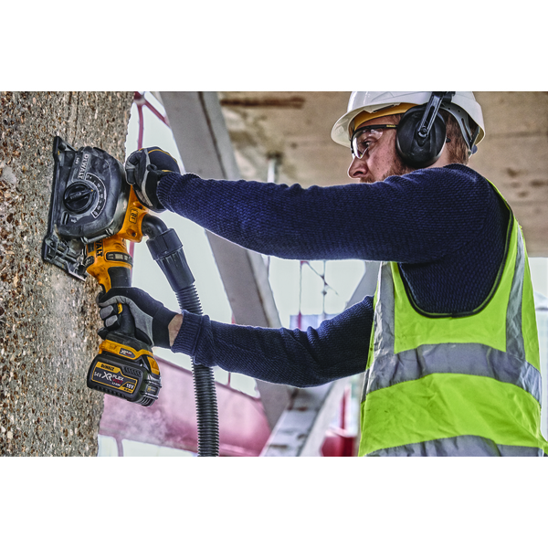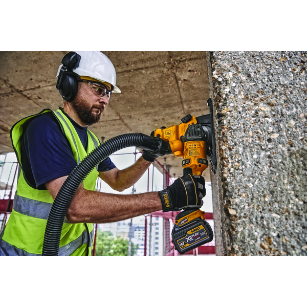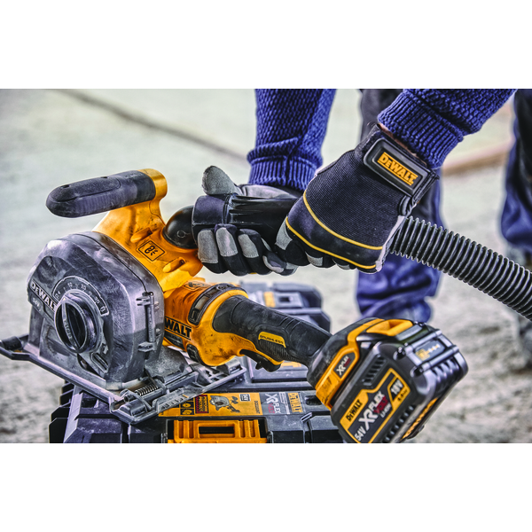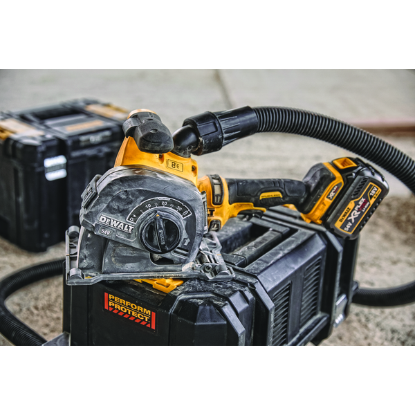 DEWALT Murnotfres/slissefres drevet av 54V XR FLEXVOLT batterier og børsteløs motor. Maksimal snittdybde på 32 mm i hard betong med justerbar sporbredde fra 8 til 35 mm. Ideell for installasjon av elrør. Inkluderer trådløs verktøykontroll for automatisk start-stopp aktivering av støvsugeren DCV586M, verktøyfri justering av snittdybden med parkeringsposisjon og E-Clutch for å beskytte brukeren mot tilbakeslag. Leveres uten batteri og ledning i TSTAK.