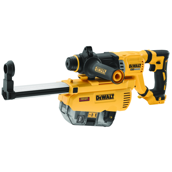 DEWALT Borhammer DCH263P1 er en 18V XR maskin med børsteløs motor. Beregnet på lett meisling og boring av hull med diameter mellom 6 og 20 mm. Borhammeren er en del av DEWALTs Perform & Protect sortiment og inkluderer vibrasjonskontroll (AVC) som sørger for lavt vibrasjonsnivå: 9,1m/s2. LED-lampe. Justerbart sidehåndtak. 3-funksjoner. Kan kombineres med DWH205DH-XJ støvoppsamler ( følger ikke med) som festes direkte på borhammeren. Leveres med 1×5,0Ah batteri og lader i koffert.