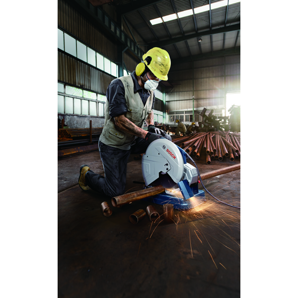 Effektiv kraftig 2400 W motor, rørdiameter opptil 129 mm, 355 mm skive, 18 kg,