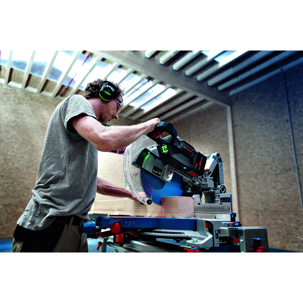 Denne batteridrevene kapp- og gjærsagen sager dype kutt på opptil 120 mm. Fullt optimert for ProCORE18V-teknologien, leverer kapp- og gjærsagens børsteløse motor en effekt som tilsvarer et 2000 W ledningsdrevet verktøy. Sagen har et brukergrensesnitt og en tilkoblingsmulighet for rask kontroll av batteristatus og turtallsvalg inkludert ECO-modus. Funksjoner som skifte av sagblad uten verktøy, skråsagingskontroll foran, samt motorbrems øker dessuten sagens sikkerhet. Verktøyet er ideelt til komplekse sageoppgaver og mange forskjellige materialer. Sagen kan monteres på flere Bosch GTA-stativer, og kan brukes med alle Bosch Professional 18 V-batterier og -ladere. Maksimal effekt oppnås med ProCORE18V = 5,5 Ah. Verktøyet leveres uten batteri og lader i en pappeske.