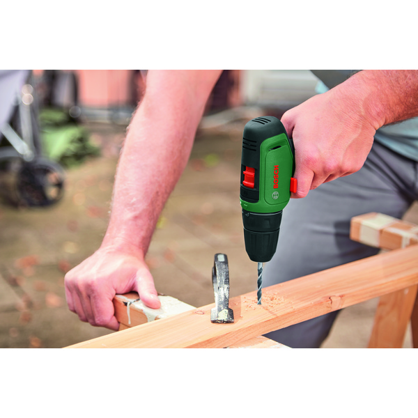 Den batteridrevne EasyDrill 1200 er utviklet for å få jobben unnagjort. Den er liten og lett og har ukompliserte innstillinger for enkel bruk og håndtering uten at det går ut over ytelsen. Den har 20 momentinnstillinger å velge blant, én innstilling for boring, samt en 2-trinns girkasse som sørger for optimal kraft og hastighet for enhver oppgave. Et innebygd LED-arbeidslys lyser i tillegg opp emnet og sørger for god sikt under alle forhold. Enkelhylsechucken medfører dessuten at bits kan byttes raskt og enkelt. Bormaskinen er perfekt for å komme raskt i gang med prosjekter som krever skruing eller innebærer boring i tre, metall og plast. Verktøyet hører med i 12V POWER FOR ALL-systemet: Ett batteri kan brukes på alle 12V POWER FOR ALL-verktøyene (medfølger).