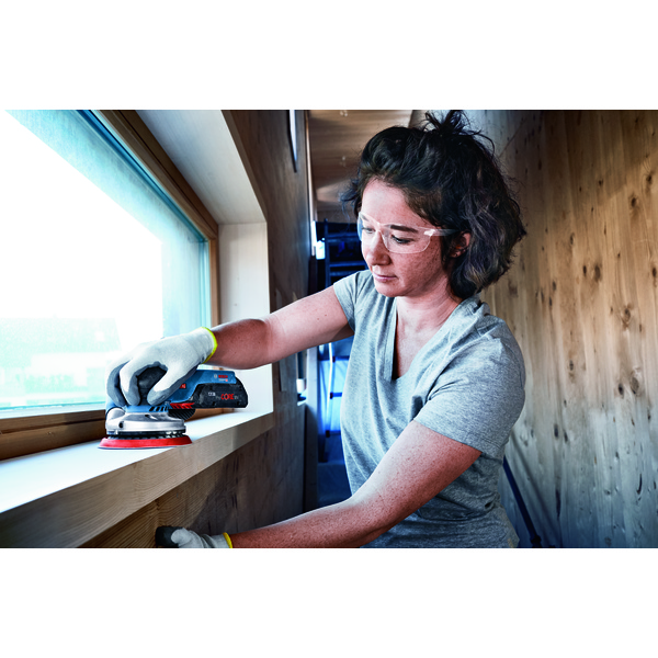 Eksentersliperen GEX 18V-125 Professional gir brukeren full kontroll over verktøyet, spesielt under arbeid på større flater. Eksentersliperen har svært god balanse nær emnet, mens en håndstøtte og et håndtak med suveren ergonomi gir optimal kontroll. Den børsteløse motoren og Bosch Professional 18V System sørger for rask fremdrift i arbeidet og lengre verktøylevetid. GEX 18V-125 Professional er dessuten enkel og intuitiv å bruke. Den batteridrevne maskinen er beregnet for sliping, mellomsliping, lakkfjerning og sluttbearbeiding av overflater. Den passer til tre, finer, lakk og fyller, og dessuten til mineraler og akryl. Produktet kan brukes med Professional 18V System og Boschs støvavsugssystem Click & Clean. Det leveres uten batteri og lader i en pappeske.