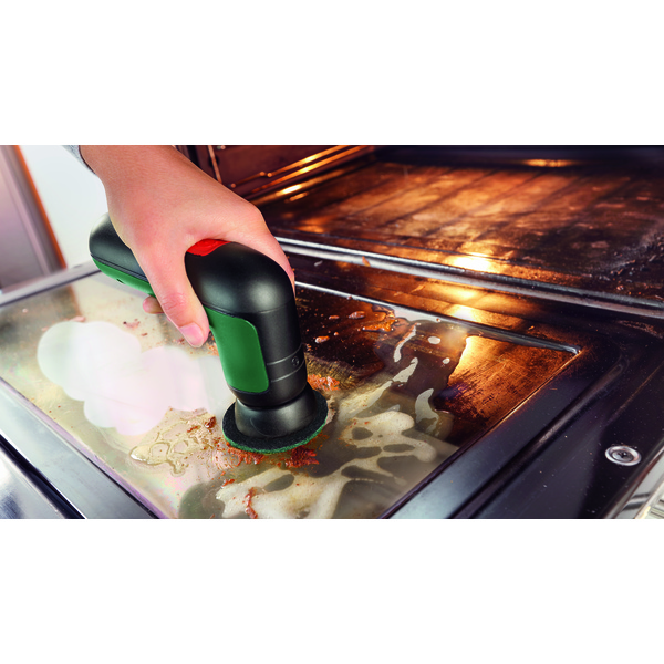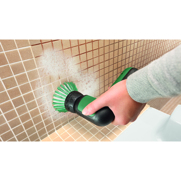 Det sterke multiverktøyet UniversalBrush gjør livet enklere. Det er en allsidig hjelper for fjerning av både enkelt og vanskelig smuss. Den kraftige motoren sørger for at børsten roterer konstant, og gjør den egnet for selv de mest krevende skrubbeoppgavene. Forskjellige forsatser gjør den dessuten egnet for mange overflater og materialer. Med beskyttelsesklasse IPX5 mot vannsprut er den også tilpasset for bruk i våte omgivelser. Børsten passer til skrubbing av fliser og fuger, hagemøbler, stekeovner, gryter, panner og dusjvegger, og kan komme til på trange steder som armaturer. Dette praktiske verktøyet er batteridrevet (li-ion-batteri) og kan lades ved bruk av mikro-USB-kabel.