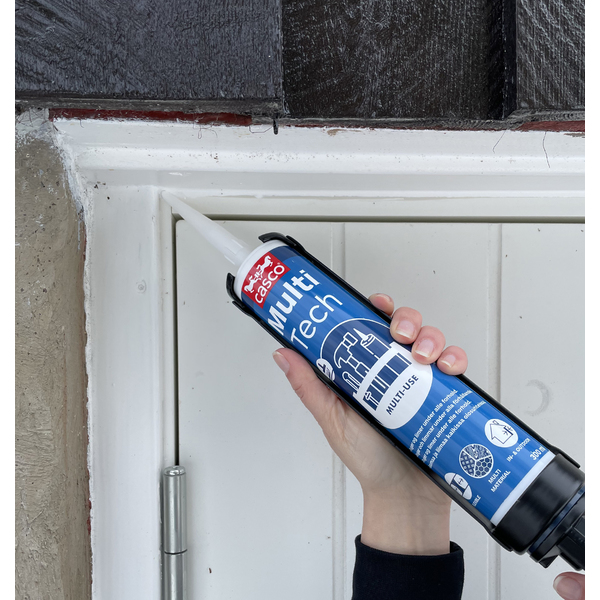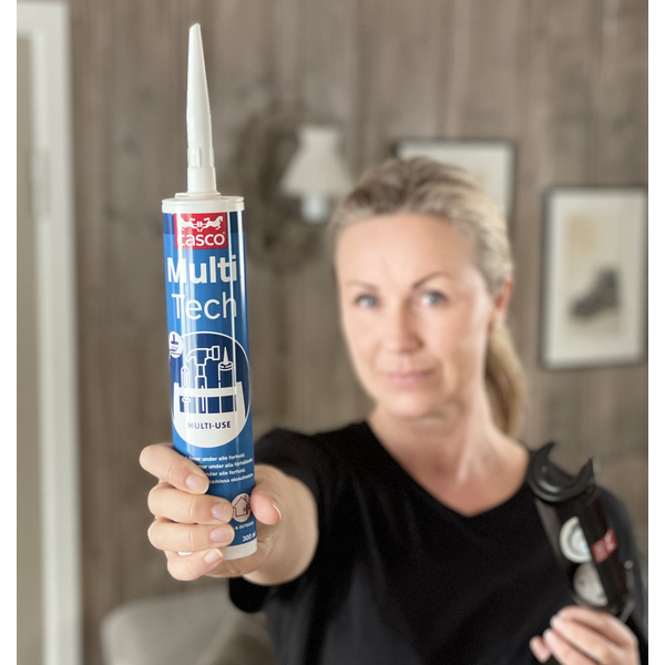 Casco MultiTech er en elastisk lim- og fugemasse for nærmest alle arbeidsoppgaver til boligen, hytta, båten eller andre utfordrende oppgaver både ute og inne. Produktet har et bredt anvendelsesområde, og sikrer god vedheft til mange typer underlag. Tåler bevegelse, støt, vibrasjoner og store temperatursvingninger, og er godt egnet til gulvfuging. Rett og slett en «verktøykasse på patron!»