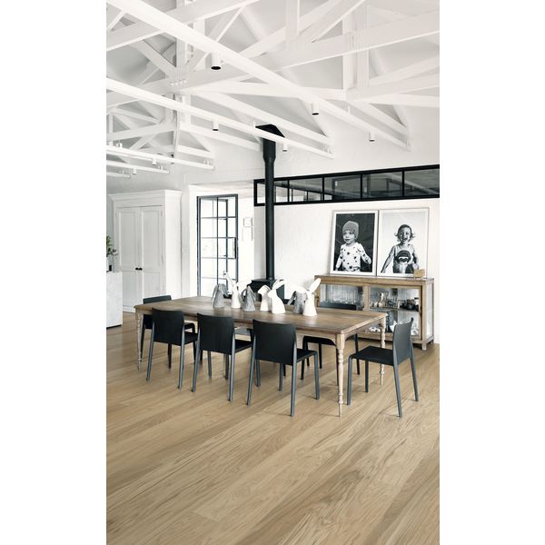 Whole Grain Wide er et pigmentert 1-stavs eikegulv i Life Collection. En sortering med få kvister og et autentisk utseende. Mikrofas 4 sider forsterker det klassiske plankeinntrykket. En innovativ matt lakk eliminerer gjenskinn og beskytter treverket mot daglig slitasje.